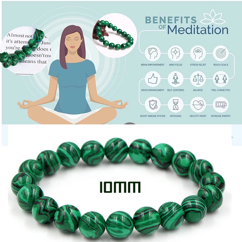 10MM Malachite Bracelets for Women Men Natural Stone Beaded Bracelet Round Shape Diabetes Relief Bracelet Lucky Jewelry Gift
