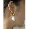 kshmir 2020 Golden circle earrings new vintage high imitation Baroque pearl earrings gold circle earclip Women jewelry