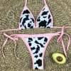 Cow Printed 2pcs Sexy Women Summer Swimwear Bikini Set G-String Thong Beach Triangle Suit Swimsuit Bathing Suit Swimming Suit