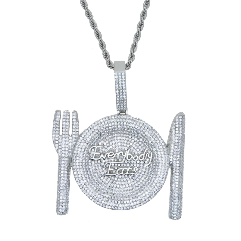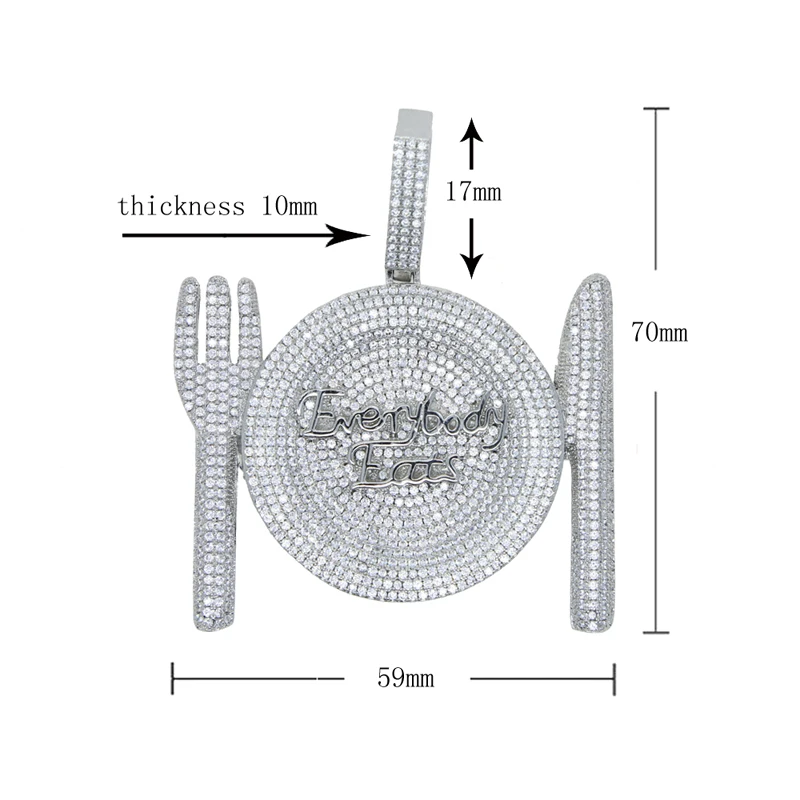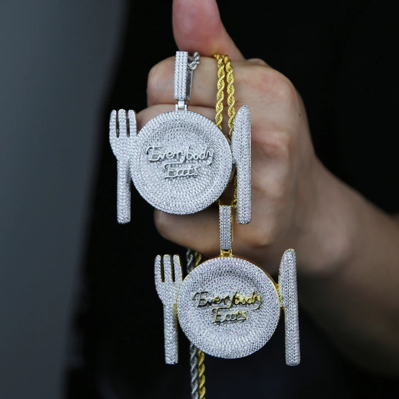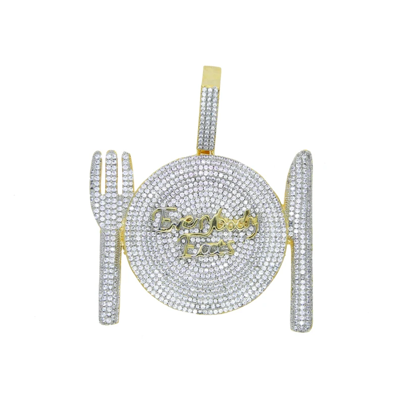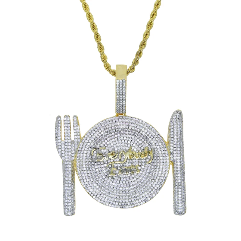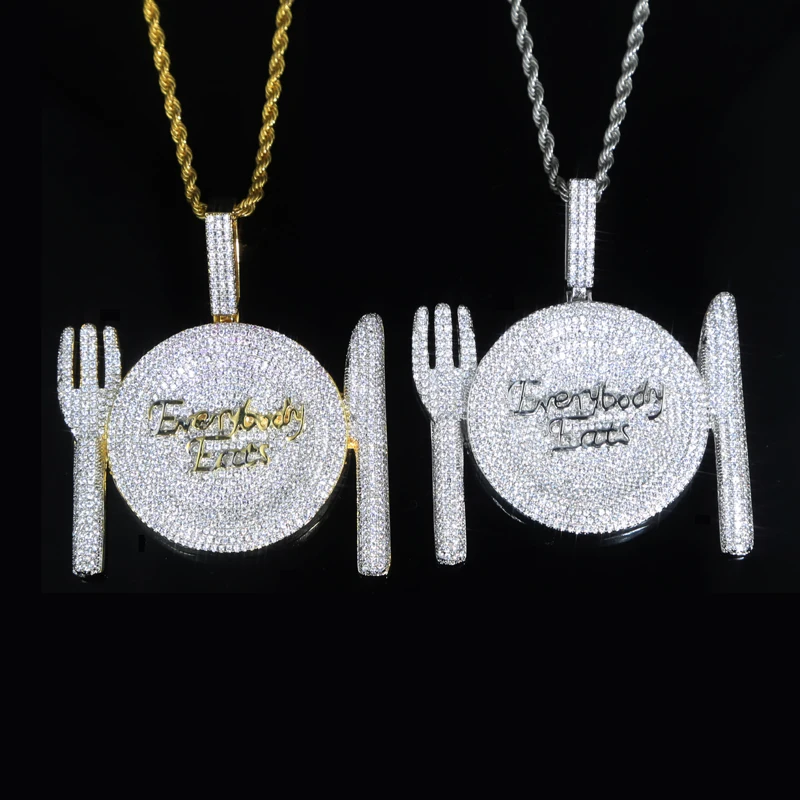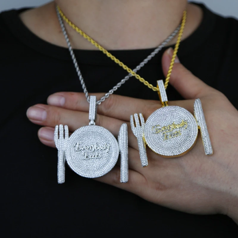 Everybody Eats Hip Hop Pendant For Men Two Town Gold Color Knife Fork Plate Shaped New Iced Out Bling Jewelry