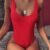 New Sexy Female Swimsuit Vintage One Piece Ruffled Push Up Solid Red Swimwear Women Monokini Padded Bathing Suits