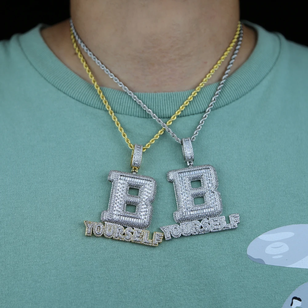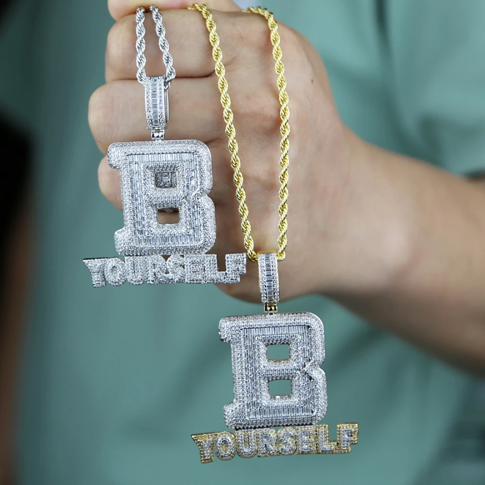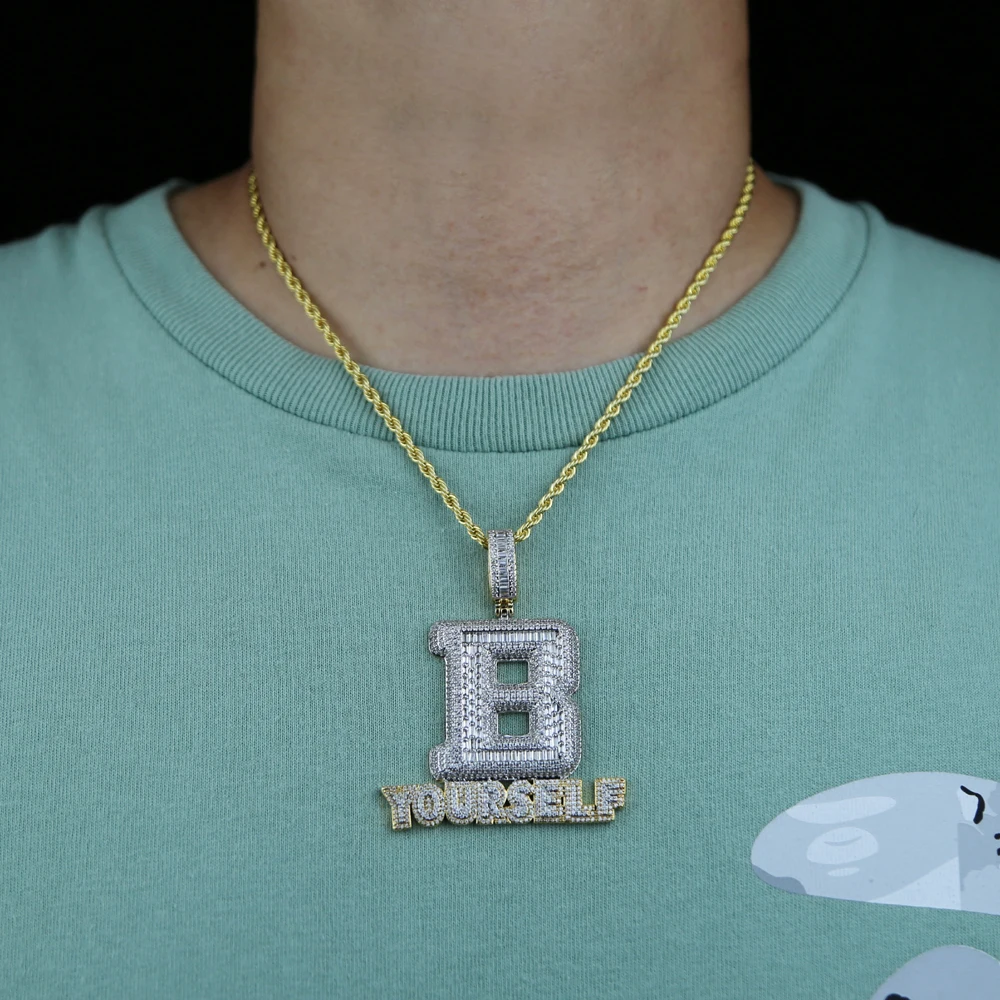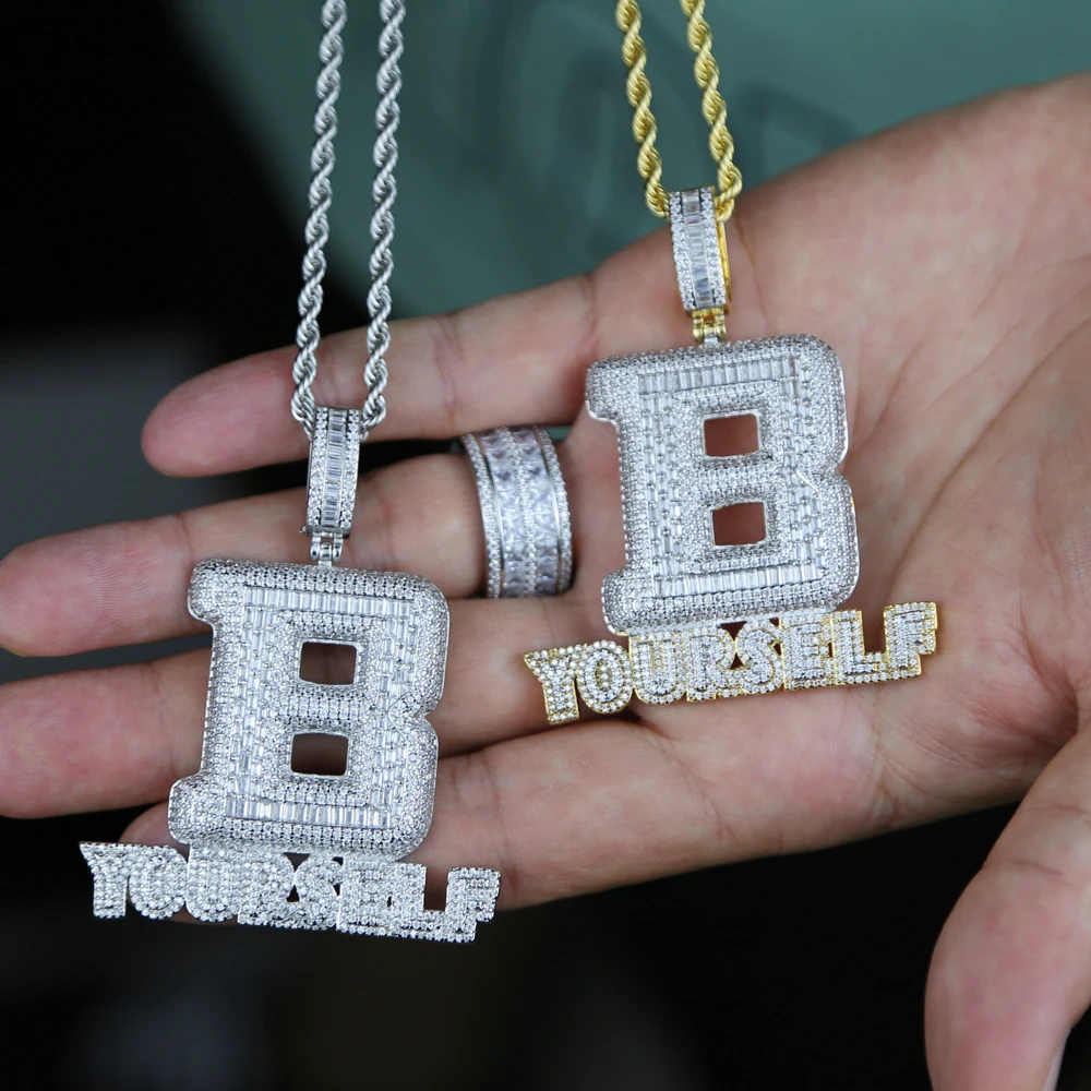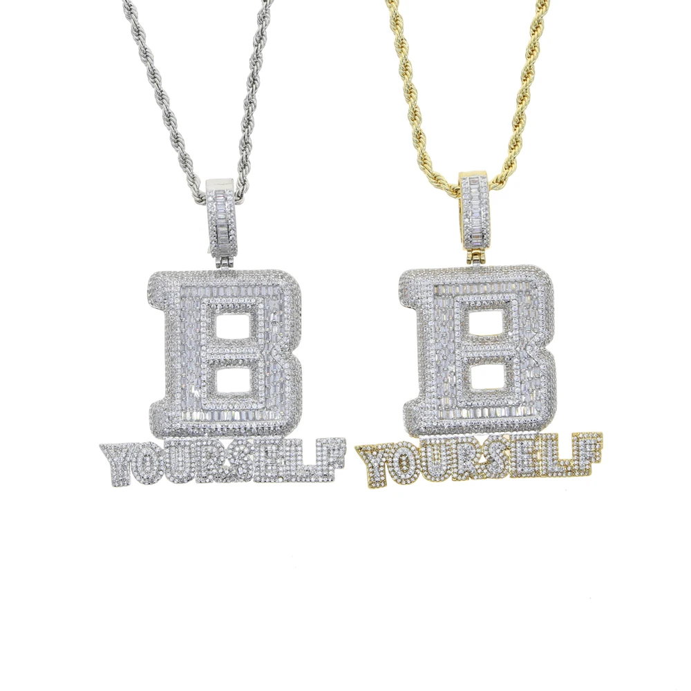 Hip Hop Full Iced Out Letter B Pendant Pave 5A Cubic Zirconia Bling Be Yourself Charm Necklace For Men Jewelry With Rope Chain