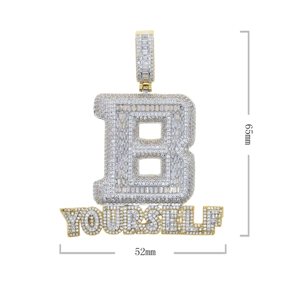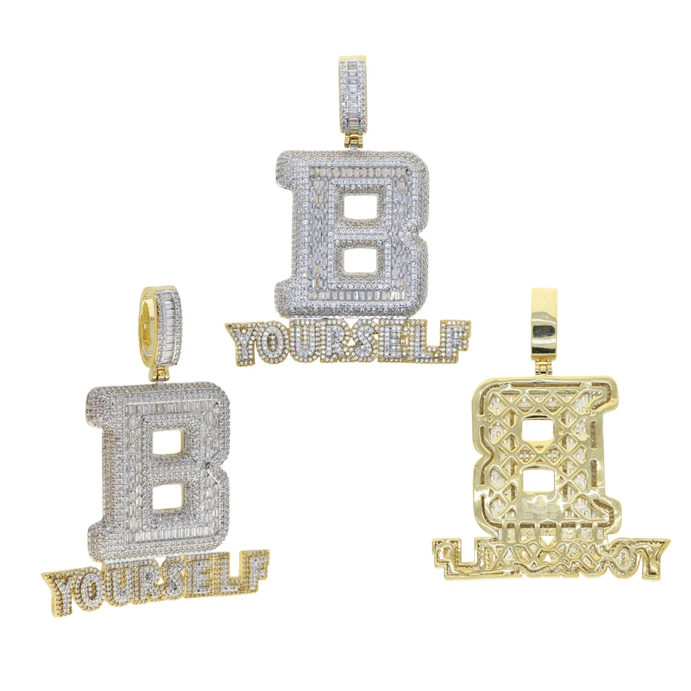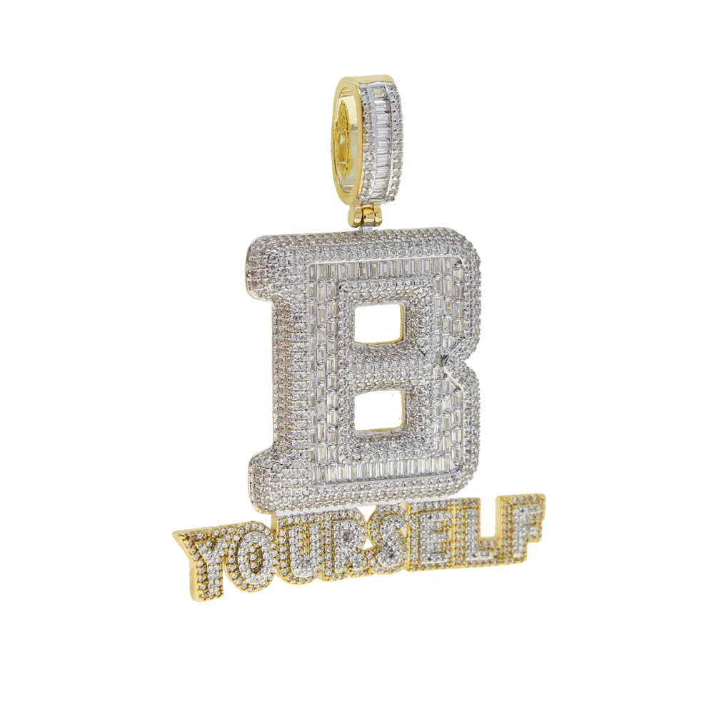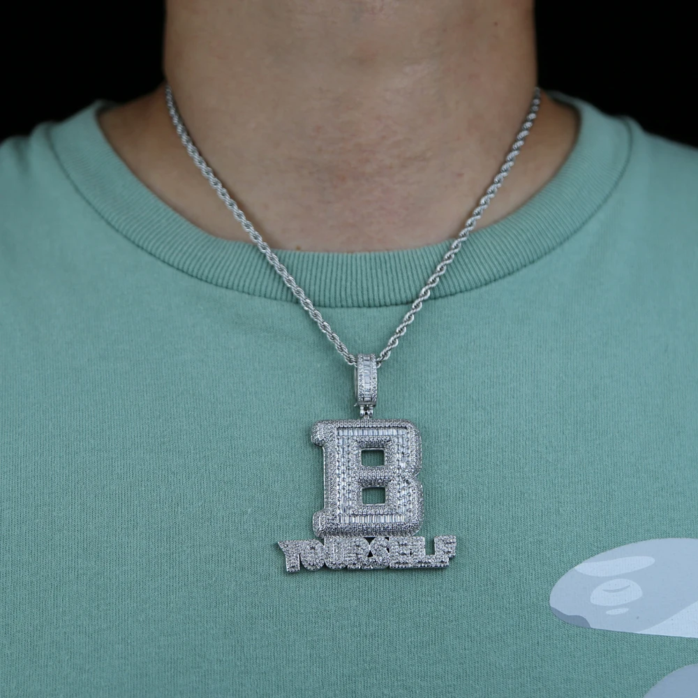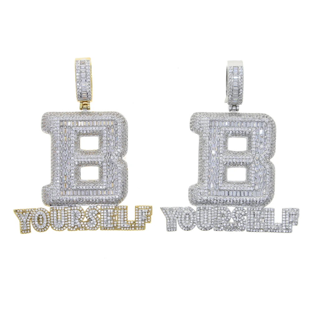 Hip Hop Full Iced Out Letter B Pendant Pave 5A Cubic Zirconia Bling Be Yourself Charm Necklace For Men Jewelry With Rope Chain