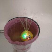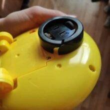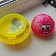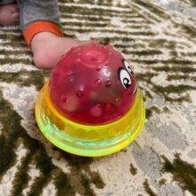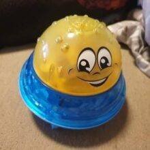 Fast delivery to Almaty (less than a month). A chic toy. The children are delighted. When the yellow Kolobok gets into the water, it glows and the Fountain lets (I found two water sensors on the body. If you touch them with wet hands, the device works). On the floor like UFO flies.