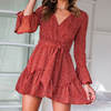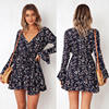 Women Autumn Long Sleeve Sexy Mini Dresses Flower Ladies Casual V-Neck Short Summer Dresses 2020