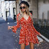 Women Autumn Long Sleeve Sexy Mini Dresses Flower Ladies Casual V-Neck Short Summer Dresses 2020