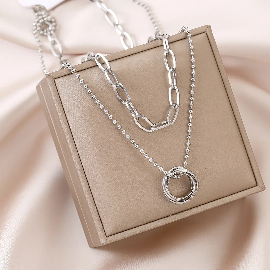 XIYANIKE 316L Stainless Steel Gold Color Multi-layer Geometric Necklaces For Women 2021 New Fashion Party Jewelry collares para